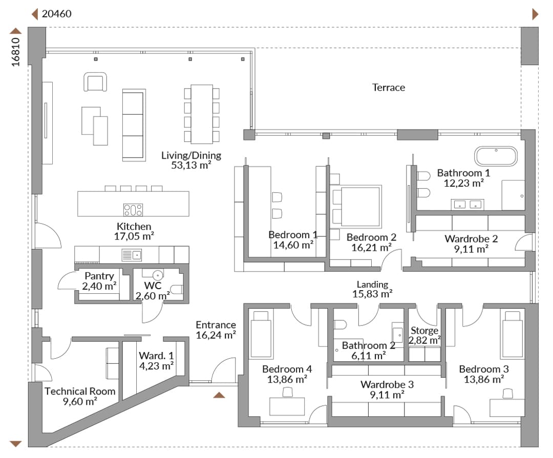 Complete plan of all floors with area